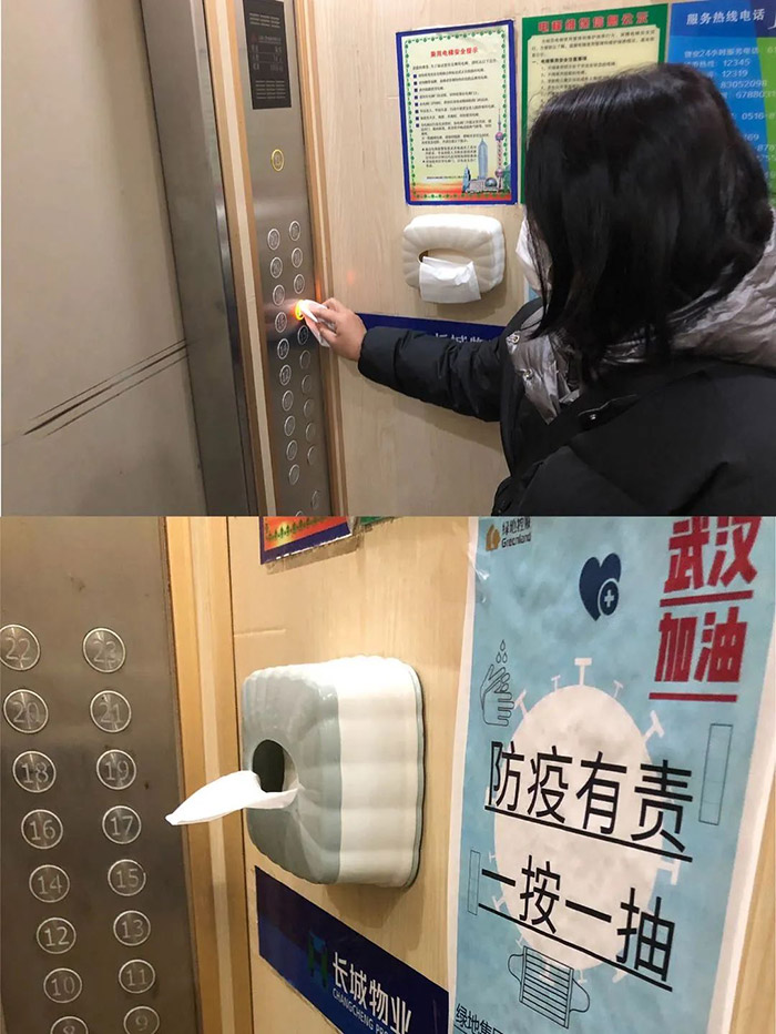 Обеспечить сотрудников откачкой бумаги в лифте, чтобы предотвратить перекрестную инфекцию бактерий при нажатии клавиш лифта.